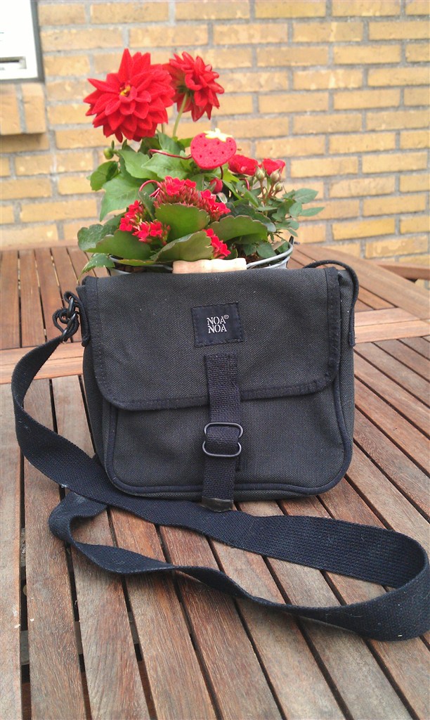 Billede 18: Taske. Mrk: Noa Noa. Sort stof. Kun 1 rum. Lang rem. Pris 50,-