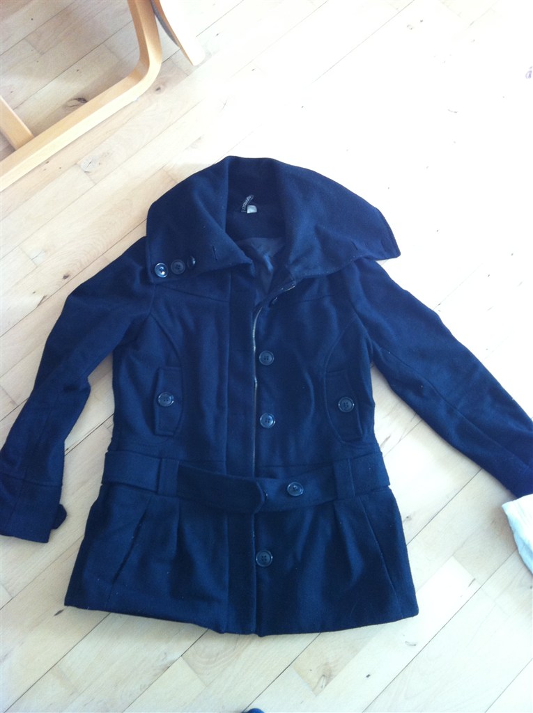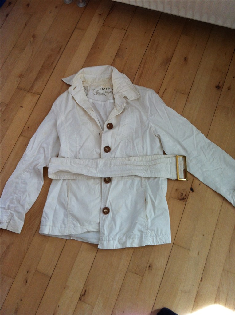 Billed 2; hvis forårsjakke med bælte mærket Amisu str. 42