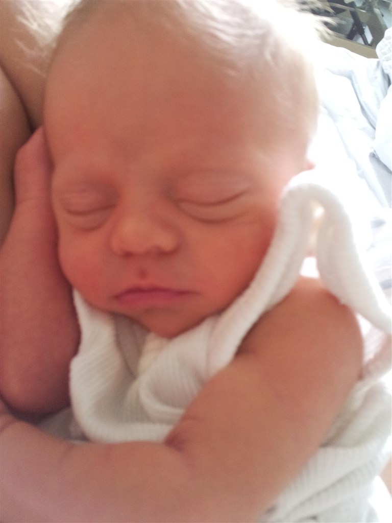 Jeg vågnede lørdag morgen og opdagede at mit trusseindlæg var fyldt med blod så jeg skyndte mig at ringe til fødegangen hvor de bad mig komme ind og blive checket... havde ingen smerter overhovedet hvilket nok var med til at jeg tog det forholdsvis roligt