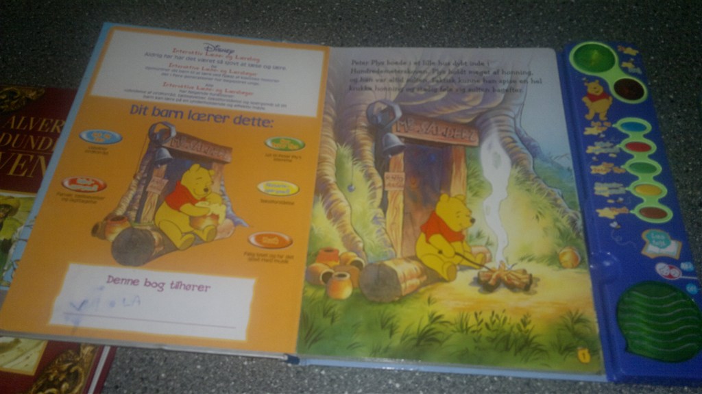Peter plys bog med musik,lys og fortællinge.