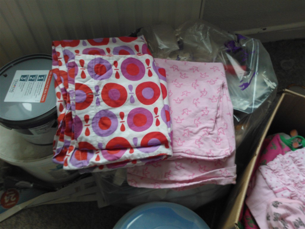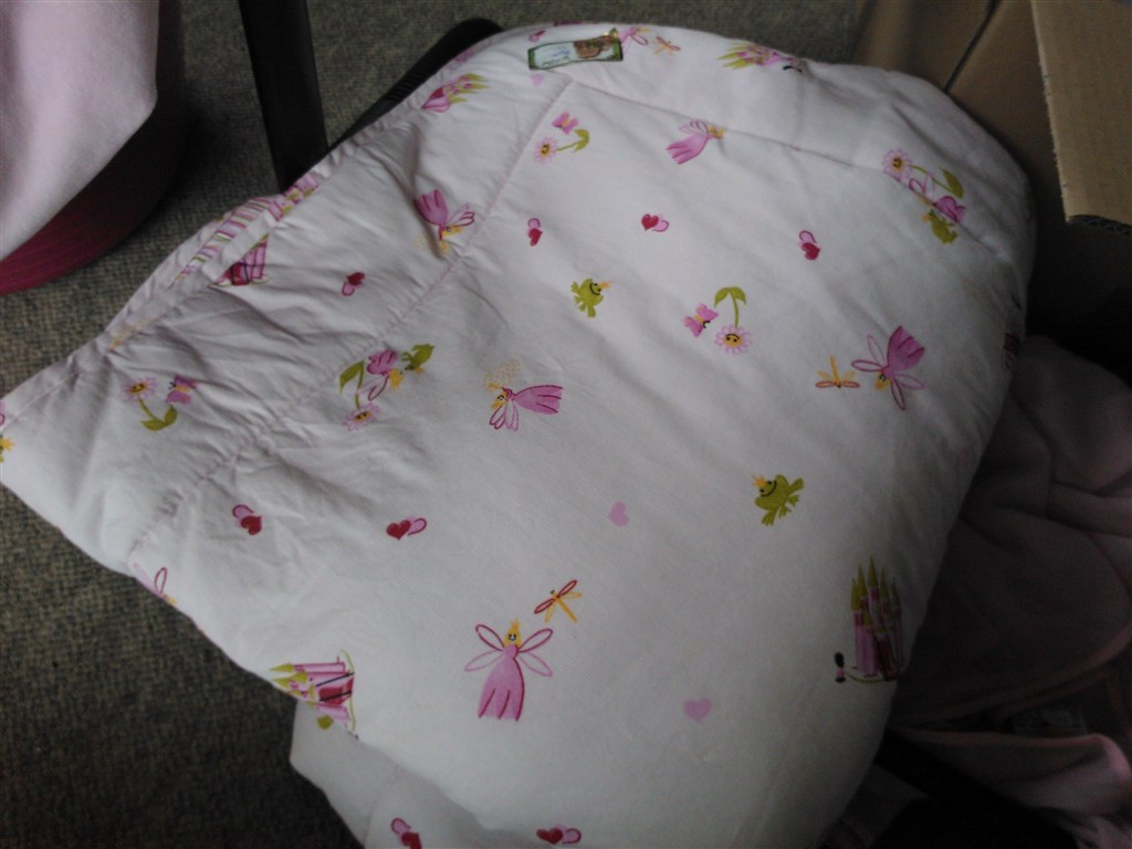 Billede 2: Katvig sengetøj. ( baby ) hovedpude betrækket er jordslået på den ene side, men der er intet at se på den anden side. 100 kr. Prinsesse sengetøj ( baby ) 50 kr.