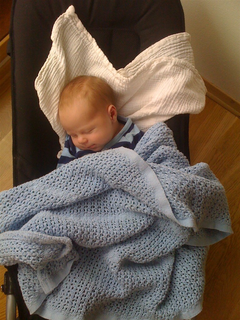 Han har ikke helt forstået konceptet med at sove om natten og være vågen om dagen, så han har sin længste vågne periode i nogle timer omkring midnat, så lige for tiden sover vi det meste af formiddagen væk, for at indhente den tabte nattesøvn (hjælper heller ikke at storesøster vågner kl 6)