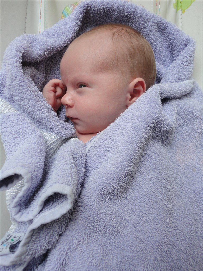 Vores lillebror, der nu hedder Mikkel, er en drøm af en baby. Han sover og spiser og sover og spiser og smiler de dejligste smil og vifter med sine små arme og ben. Vi skal til sundhedsplejersken for første gang i morgen, så jeg er spændt på at se, hvor stor han er blevet. Han spiser i hvert fald godt, og vi har måttet opgive str 50 til ham og bruger faktisk både str. 56 og 62, så han er helt sikkert vokset siden han blev født.