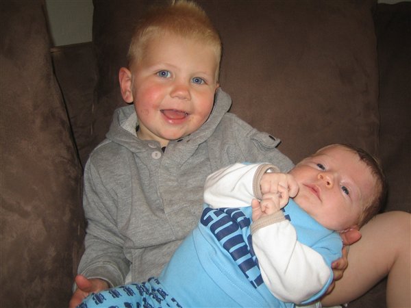 Jo der sker jo så meget så hurtigt med de små størrelser... Her er et billede af mine drenge... Den mindste Gustav er nu snart 1 måned og er endelig begyndt at tage på... Så nu vejer han 4130 gram (3930 ved fødslen)... Glæder mig til at se flere skønne babyer!