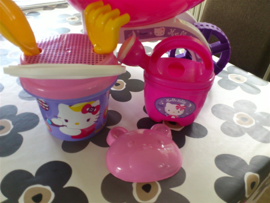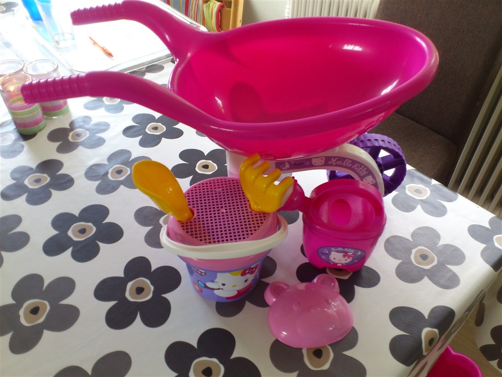 Helt ny Hello Kitty trillebør.. Min datter fik den i gave igår, og inden jeg nåede at sige noget havde min mor fået den hevet ud af det net den var i..