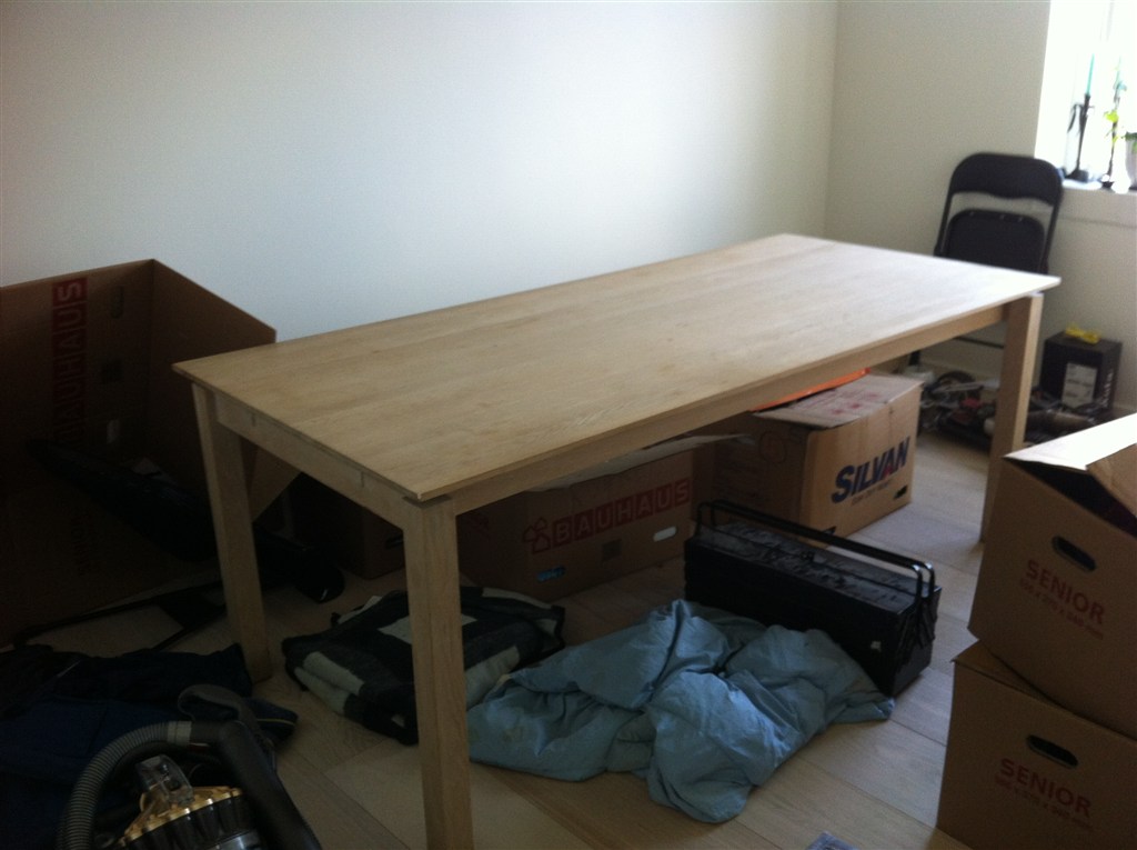 Vi er flyttet i nyt hus, og har for mange møbler.Derfor sælger jeg vores spisebord i sæbebehandlet egetræ, det er ca 2 år gammelt, men ser stadig rigtig godt ud