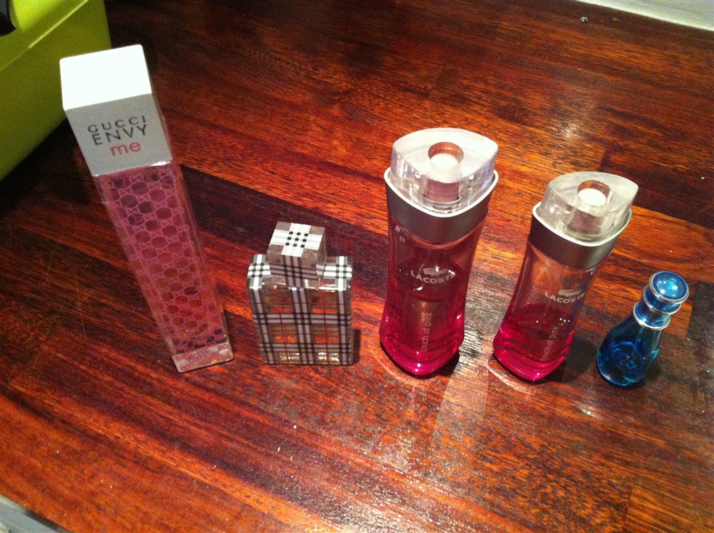Burberry Brit, lille Cool water parfume, og Gucci Envy me, samt alle body butter cremerne!
