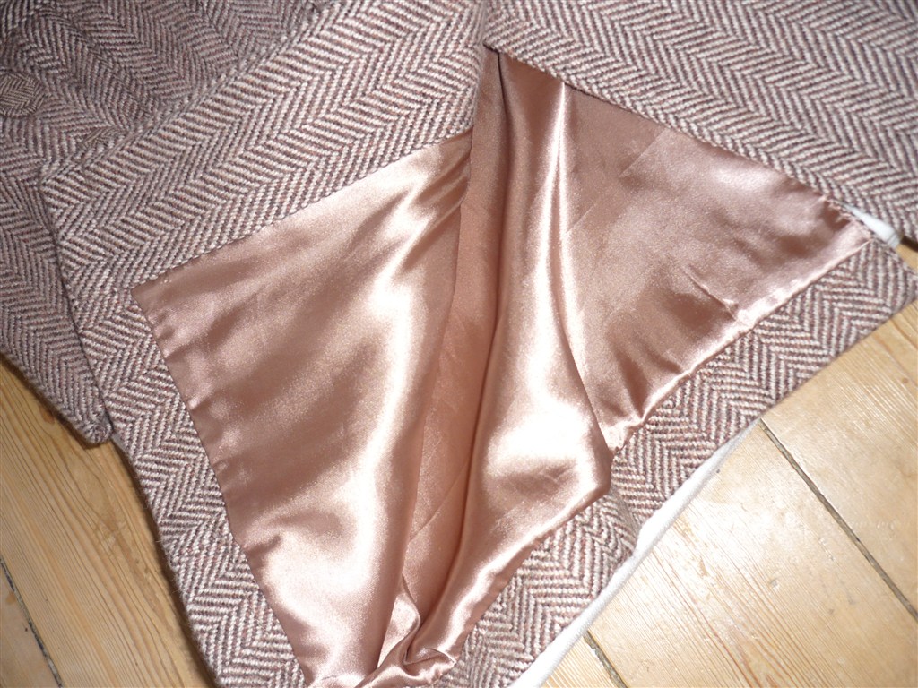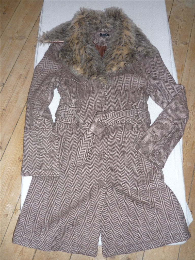 Frakke i sildebensvævet brunlige nuancer, med fede detaljer, fra Vila i STR Medium!