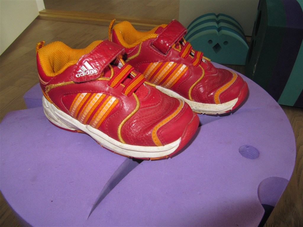 Et par søde røde Adidas sko uden slid.
