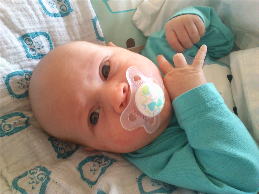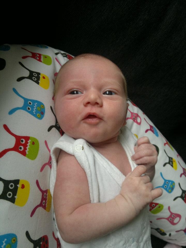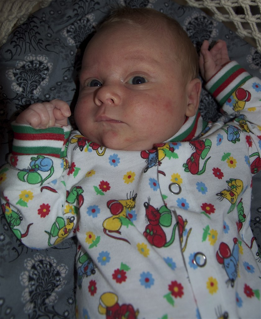 Her er Sigurd, han er nu 6½ uge gammel, og vejer ca 5 kg. Fantastisk dejlig dreng, trods en mild kolik...