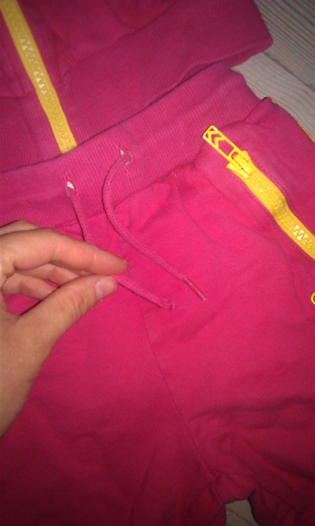 Sættet der mangler den ene bukse snor det der plastik for enden(se billedet)