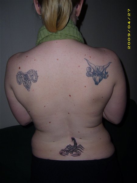 så nu har jeg Phillip´s, Jasmin´s og mit eget stjernetegn på ryggen, så skal der sættes fødselsdatoer på. på et tidspunkt og det skal så kædes sammen, men jeg ved ikke helt hvordan endnu