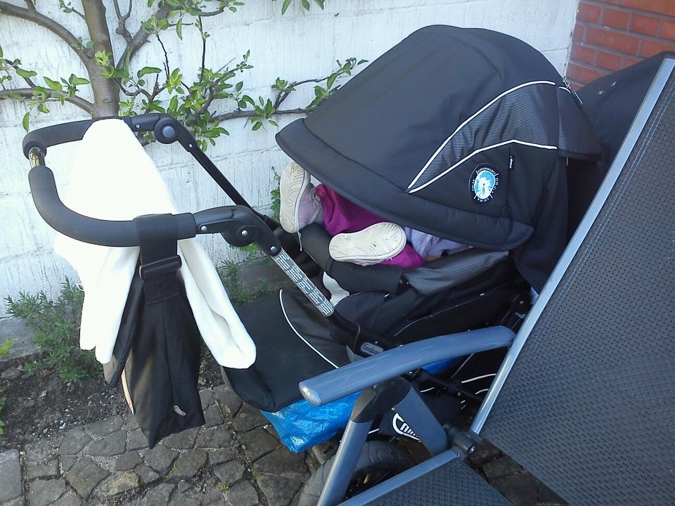 Hvis vi er f.eks. i zoo , vender vi hende væk fra os , for ellers hænger hun ud over vognen for at kigge rundt om kalechen