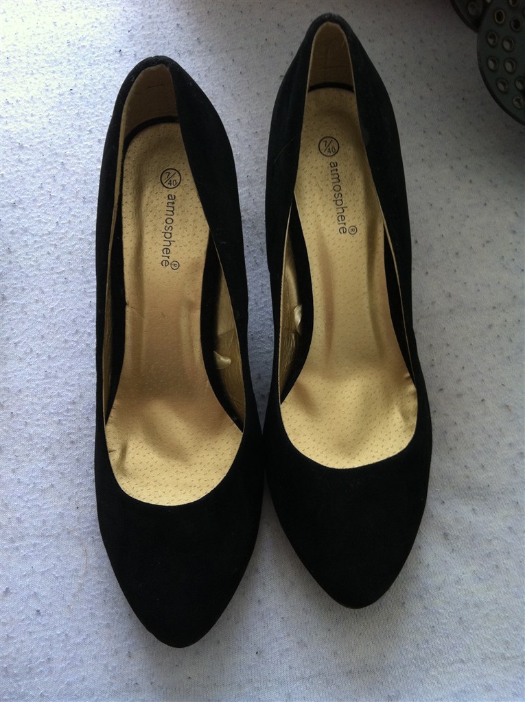 Billede 6+7+8: Stilletter i sort velour, købt i London, aldrig brugt str 40. BYD!
