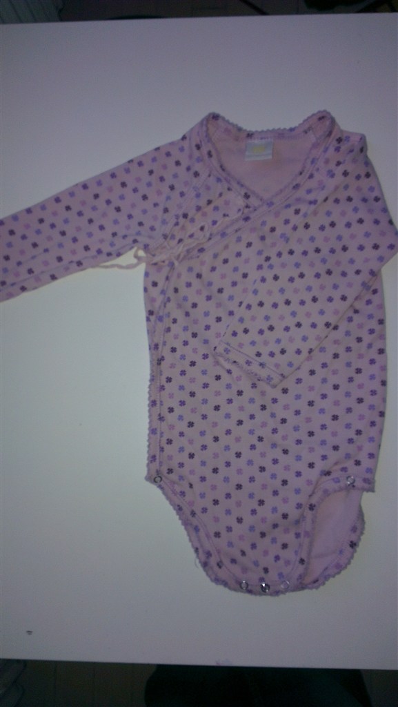 To langærmede Hollys bodyer, lyserøde med lilla kløvere. Det er slå-om bodyer og der er bændler under armhulerne og knapper forneden. Ingen slid, pletter eller huller, vasket i Neutral. Fra røg- og dyrefrit hjem.