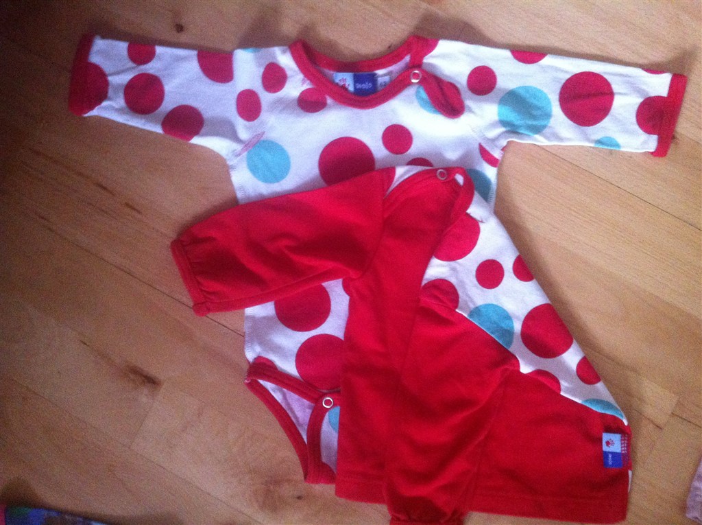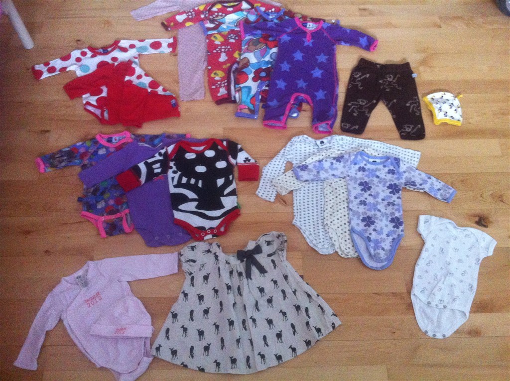 Det er godt blandet i str. lidt 56 mest 62 og lidt 68..