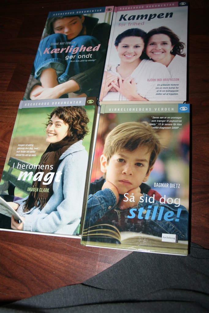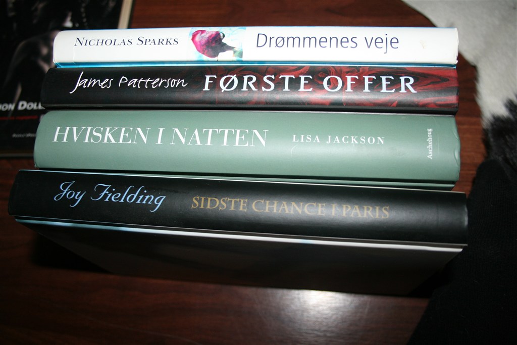 Det 2. nederste billede, vil du da ikke skrive forfatter og titel på bøgerne? Har problem med at se dem. Hvad tænker du dig af pris pr bog ca?