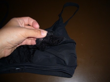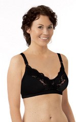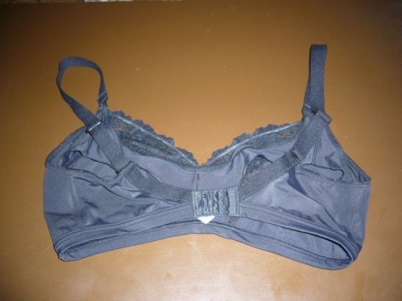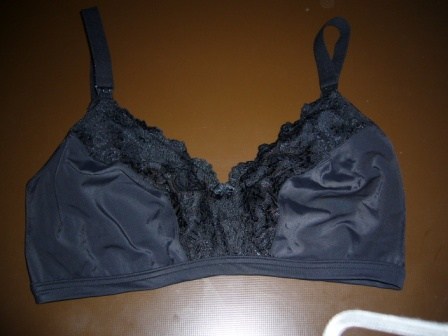 Sort amme BH fra Carriwell, med enkel blonde og "drop-cup", den er vasket en gang, men ikke brugt. Størrelsen er VII (er ikke helt klar over hvad det svare til - men det er den største størrelse)