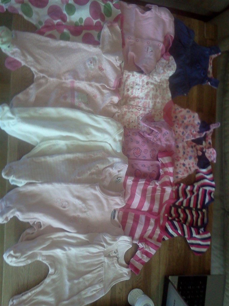 Jeg har en tøj pakke str til salg. 8 kortærmede bodyer, 14 langærmede, 7 natdragter, 5 dragter, 2 bluser, 6 bukser/leggins, 2 kjoler, 1 hue- bud modtages men prisidé 400 for alle 45 dele