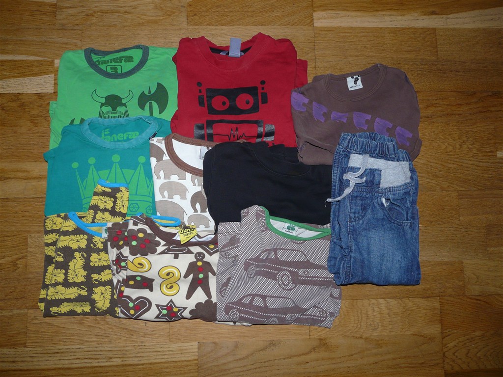 2 småfolk, 1 med løver (Pæn i farverne dog lettere fnuller, GMB str. 3-4, lille i det. Den anden med biler, pæn stand, lidt fnuller str 92-98