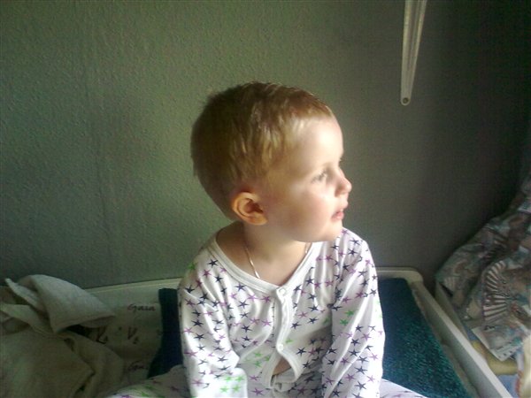 Sådan ser man ud after at man har klippet sig selv og far måtte igang med saksen for at få det til at se nogenlunde ud. Vi skal vist ha fat i en bedre trimmer til næste gang en af ungerne laver det nr. De får da et chok når hun kommer i BH på mandag.