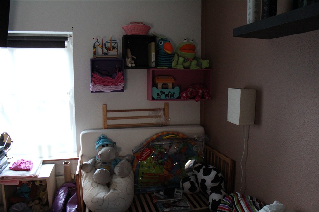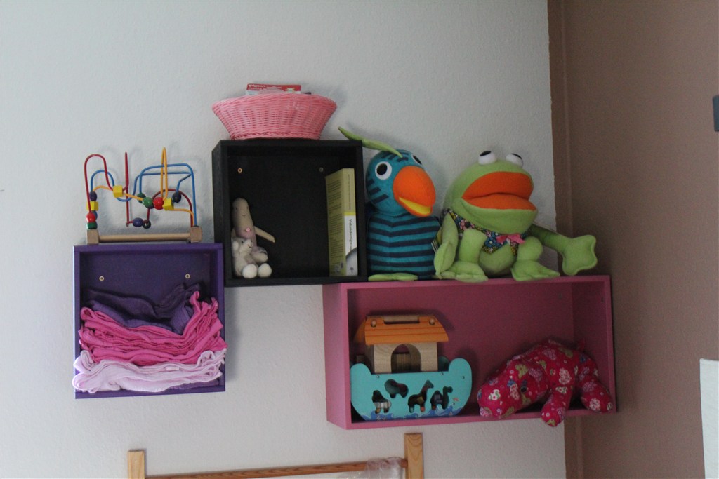 fik i dag sat de sidste bogkasser op inde over lillepigens seng... og fyldt dem med de ting der har ligget og fyldt i sengen