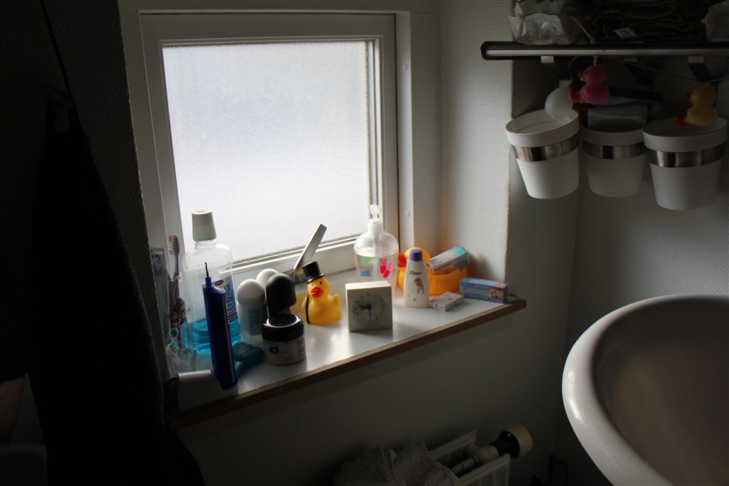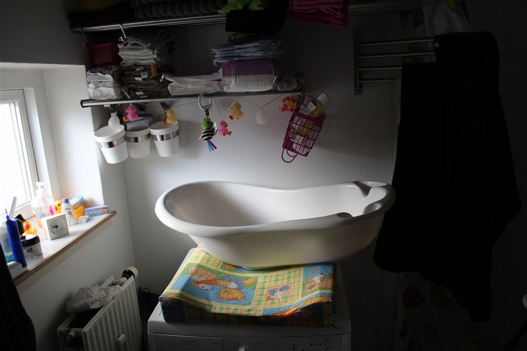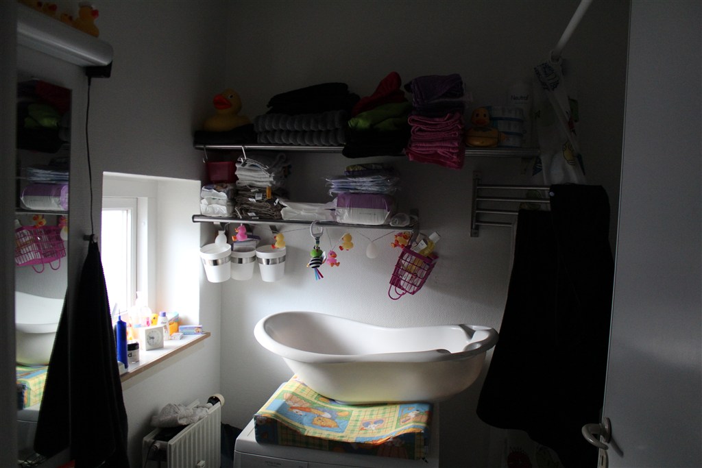 på badeværelset er der klar med badekar, pusleudstyr og gummiænder.... elllsker gummiænder