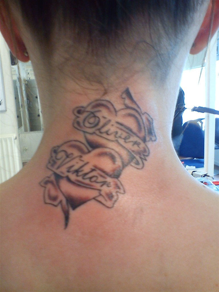 Billede er taget få timer efter, at jeg fik den lavet. Er super glad for den. Jeg vil også gerne have skrevet børnenes årstal, men ved ikke helt hvordan og hvor.