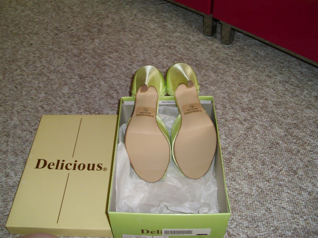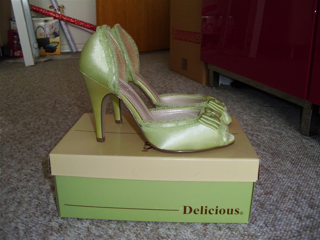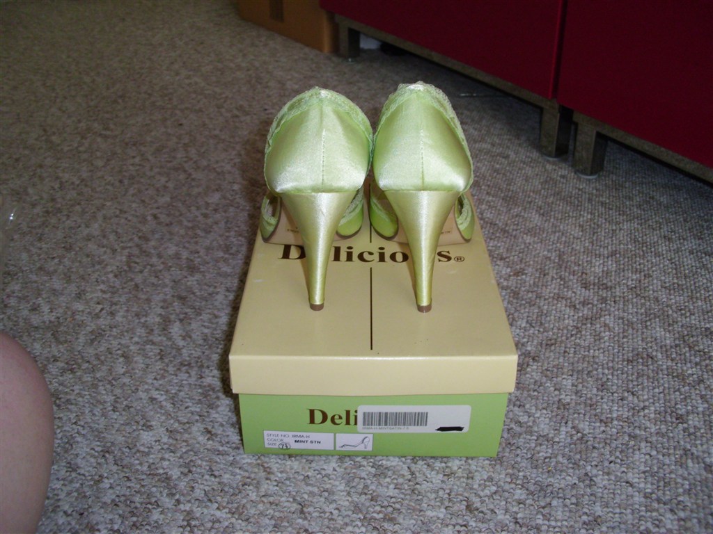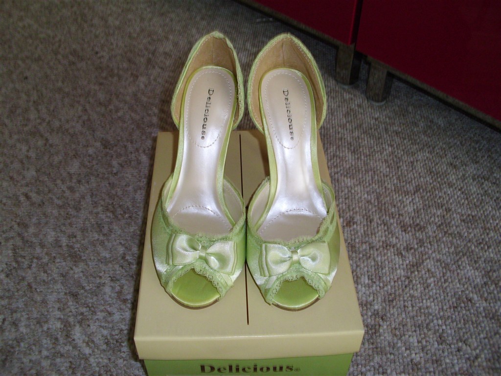 Jeg sælger disse helt nye, smukke, mint/lime grønne peep-toe stiletter, de er for høje til mig..