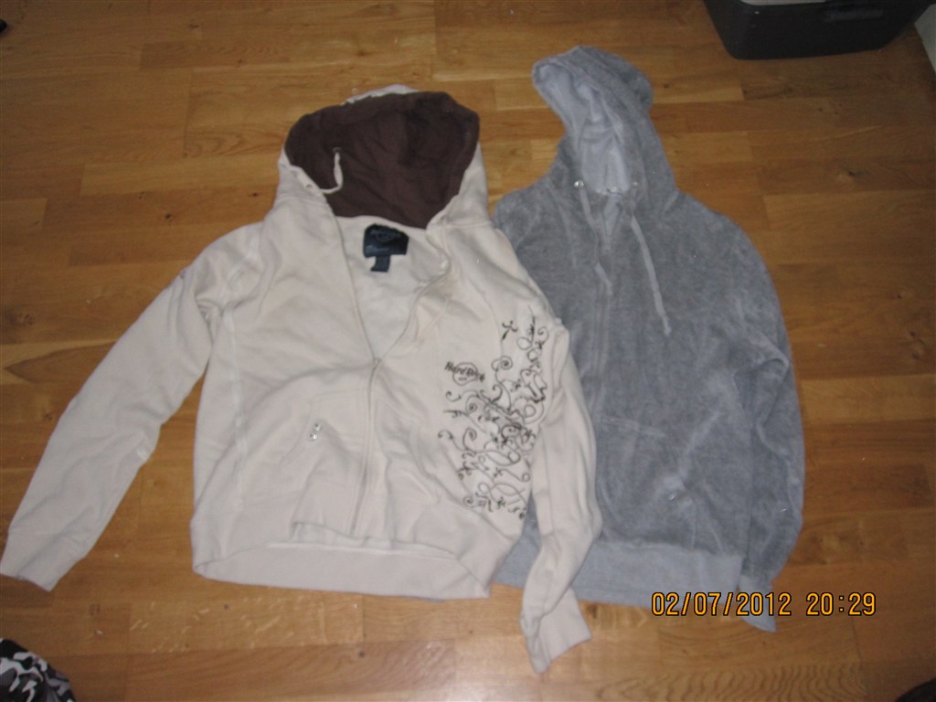 billed 3 og 4: 2 hættetrøjer, den hvide er fra HARD ROCK CAFE og størrelse XL.. den grå er noget nervøst velur og størrelse L.. sælges her især for 60 kr.