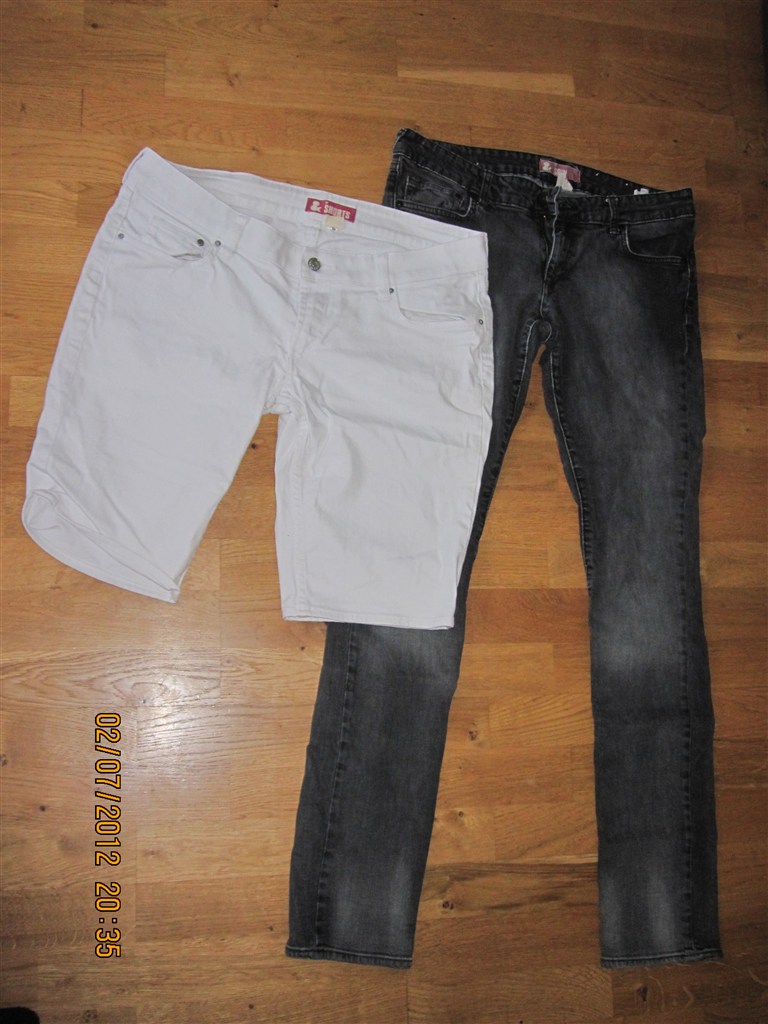 billed 10: hvide coyboy shorts, en størrelse 32.. et par almindelige coyboy bukser i grå, størrelse 32.. 50 kr stykket.
