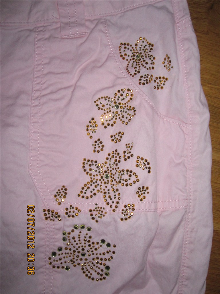 billed 11 og 12: et par lyserøde lange shorts med guld "pynt" på.. størrelse 32-34 tror jeg.. syndes ikke jeg kan finde den præcise størrelse på mærkerne