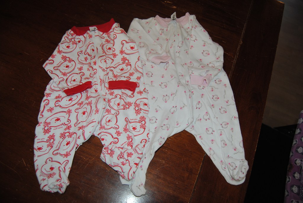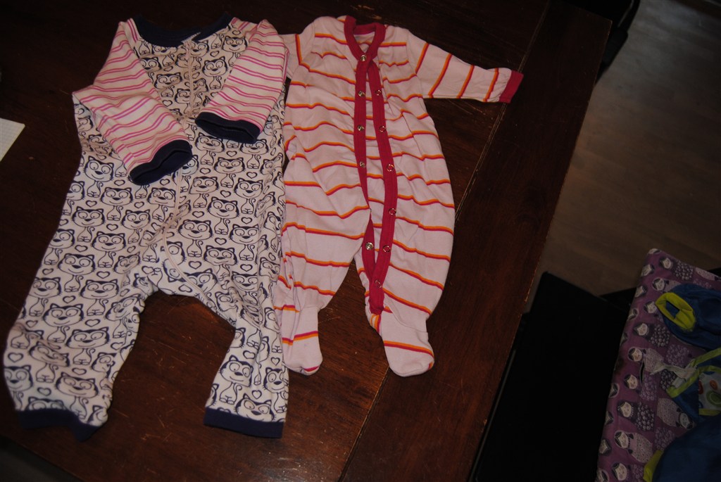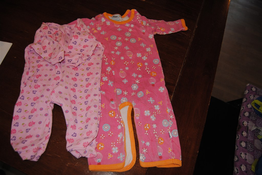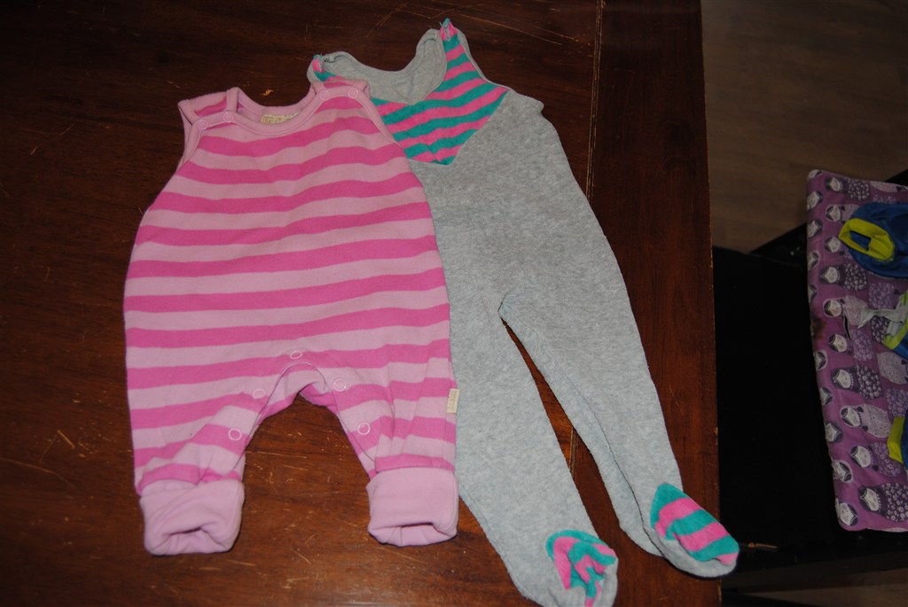 den lyserøde dragt er str 50 og den anden buksedragt er str 62 det vil jeg have 100kr for inkl porto;-)