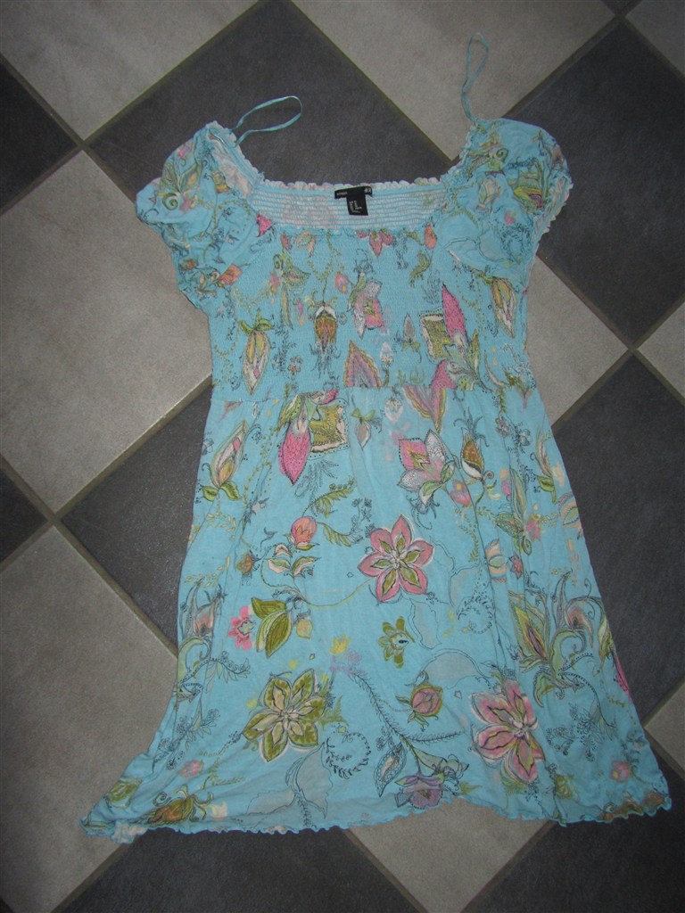 Billede 6: H&M MAMA tunika str. XL. Med elastik i bryst-region. Turkis med blomster.