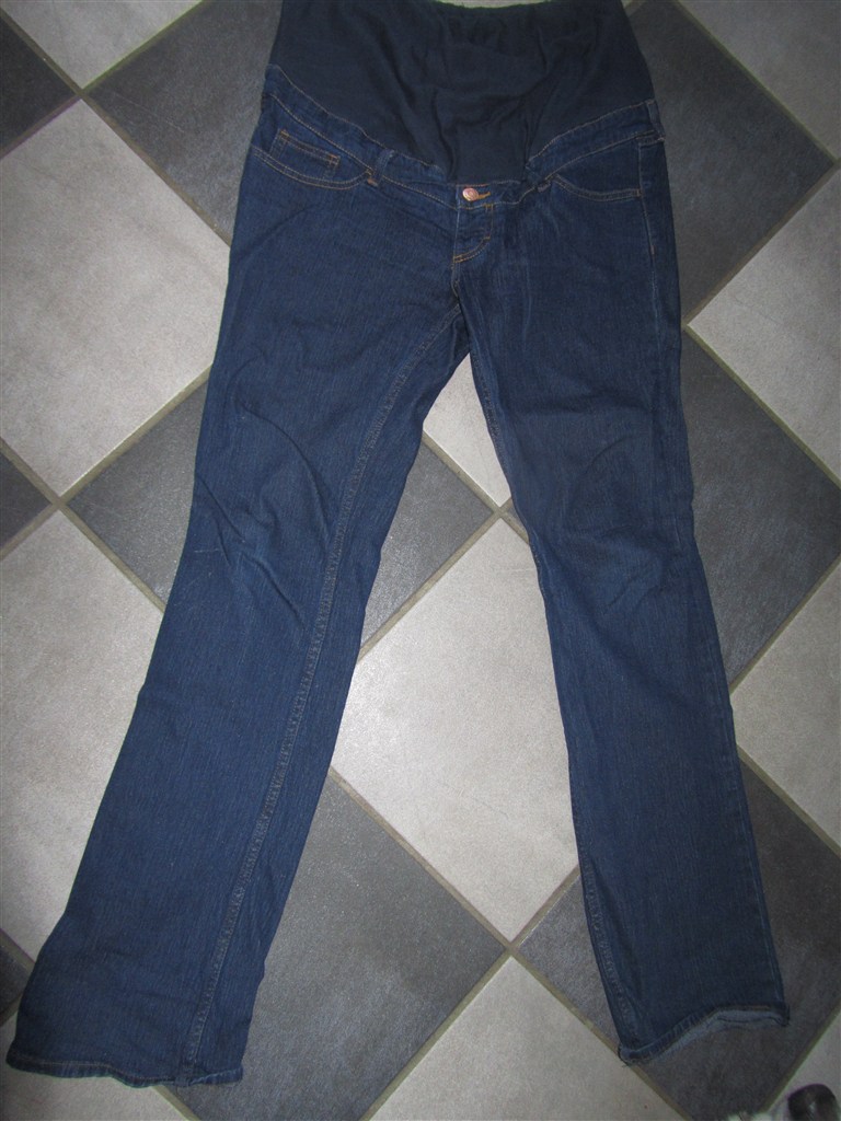 Billede 7: Mørkeblå cowboybukser med elastik om maven str 42 fra H&M MAMA. Næsten som nye. Har dog lidt slid forneden da de var lidt for lange til mig.