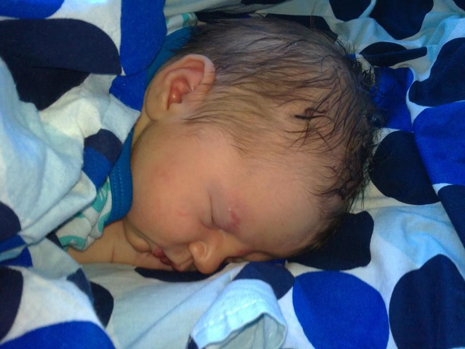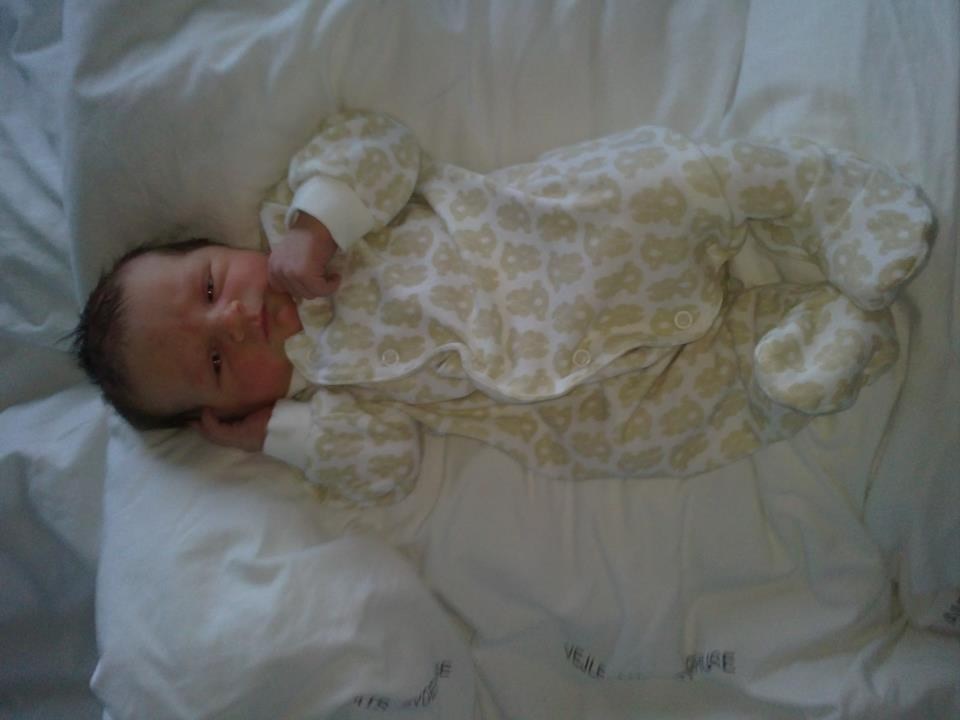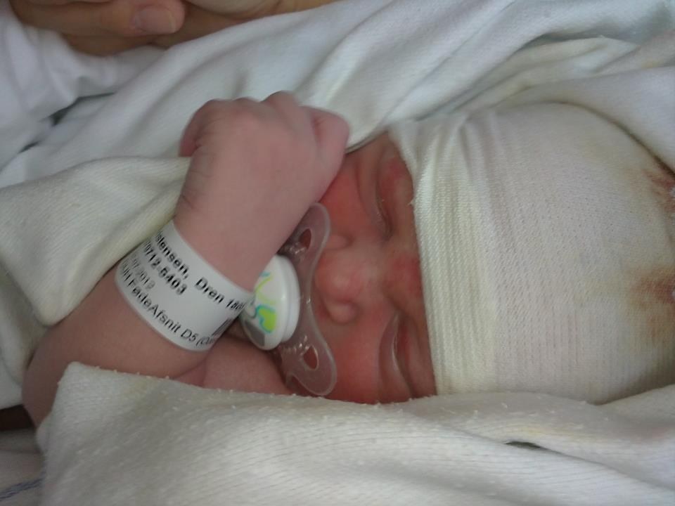 Vi tog ind på banegården og hentede kusine Natascha og ville hjem til hende og give mad, men ak... sådan skulle det ikke gå. På vejen ind tog jeg lige tid på veerne sådan bare for sjovt og booom der var var 4min imellem. Nå . Så Taz blev smidt af og vi vendte om mod OUH. Og jo der var sket lidt (meget lidt) men havde da veer. Da jeg ikke længere kunne holde de smerter ud bad jeg om at komme på fødegangen så jeg kunne få epidural, hvilket hun blev lidt små muggen. Der var ikke så travl så fik det hele i orden på ingen tid. Jeg kunne så ikke tåle epiduralen og mit blodtryk styrtdykkede igen og igen, også slukkede hun. Dvs jeg var IKKE smertedækket. Veerne var rigtig skræppe og til sidst var det nok. Efter 8 timer UDEN livmoderhalsen var mindre, eller jeg havde åbnet mig, sagde vi stop. Og lægen bakkede op om det. Så der skulle køres kejsersnit. Malthe har gennem hele forløbet været sej og stærk og har ikke taget skade af morens blodtryksdyk. Men jeg blev kørt til kejsersnit. Det var lidt overvældende da det jo ikke var en del af planen. Der var anæstilægen der og de forsøgte sig med epidural igen dog minimalt af gangen så de kunne holde øje. Kl. 6.26 kunne vi høre den aktive skrigeballon komme ud og moren ... ja hun tudede ♥ Janus gik med ud og fik pakket Malthe godt ind og kom bagefter ind til mig mens de hæftede mig sammen. Jeg blev kørt til opvågning og lå med lækkermåsen ved mig imens ♥