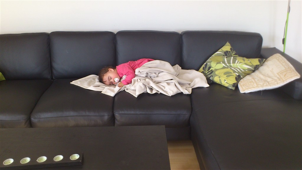 På billede nr. 7 er hun faldet i søvn på sofaen lige efter de sidste piger var blevet hentet fra Zilans fødselsdag! Hun havde ikke tid til middagslur den dag, så der gik ca. 5 minutter, fra pigerne var gået, til jeg fandt hende sådan! Det er sgu aldrig sket før!