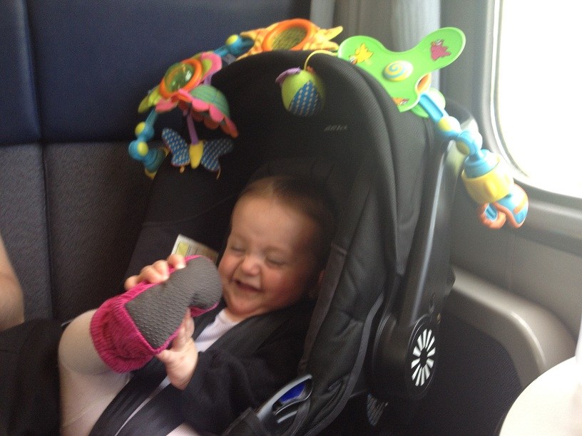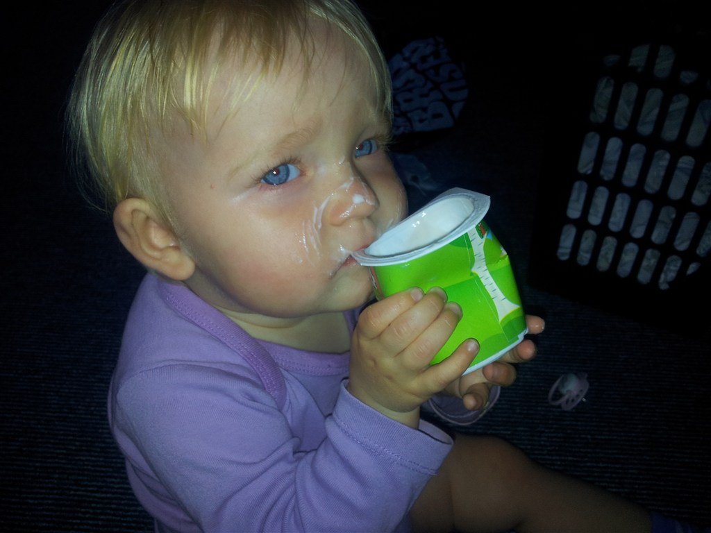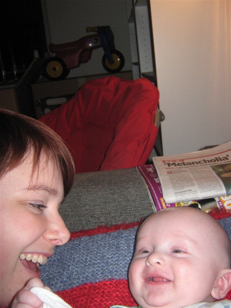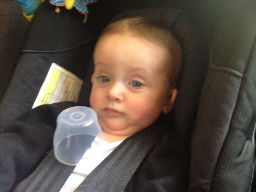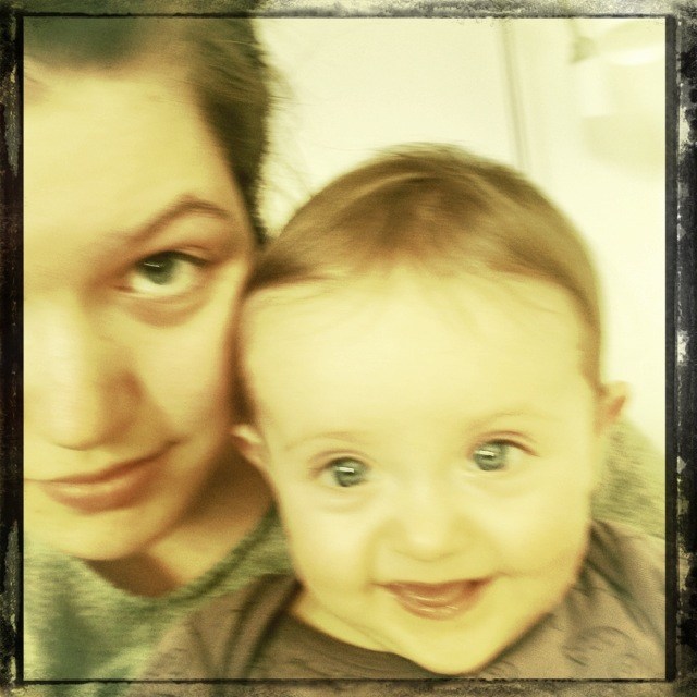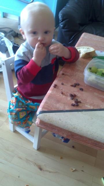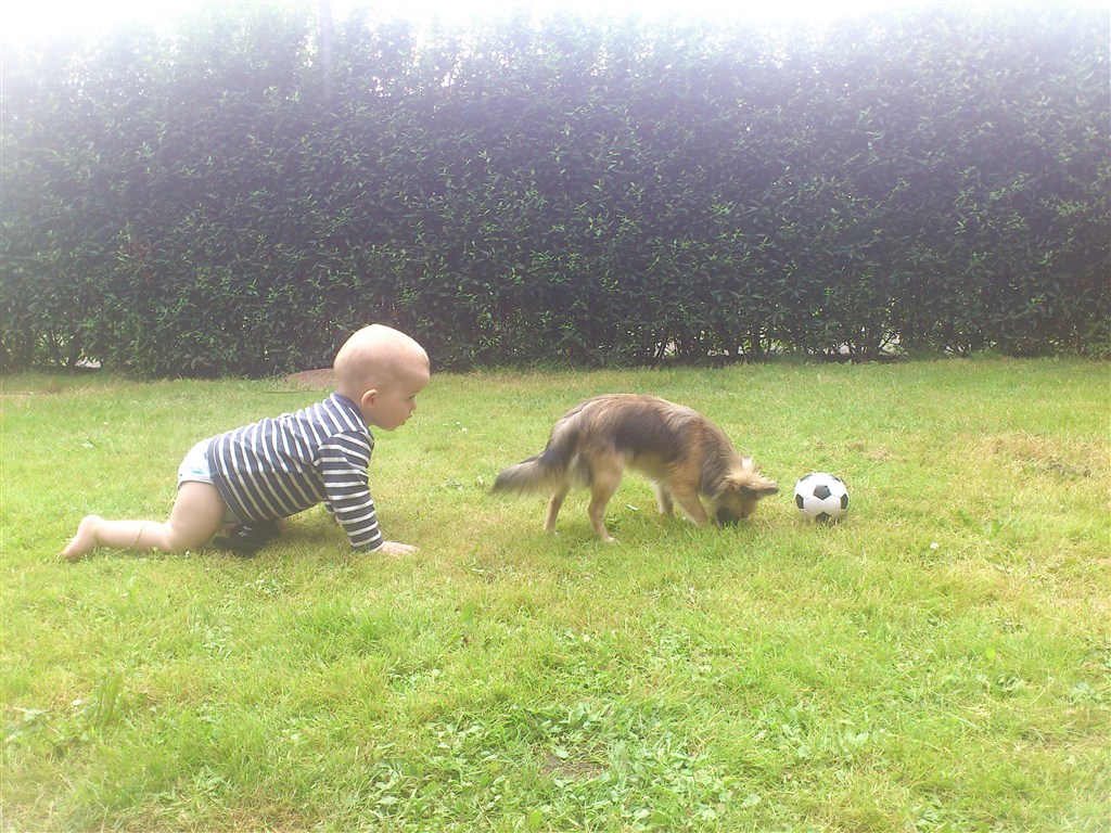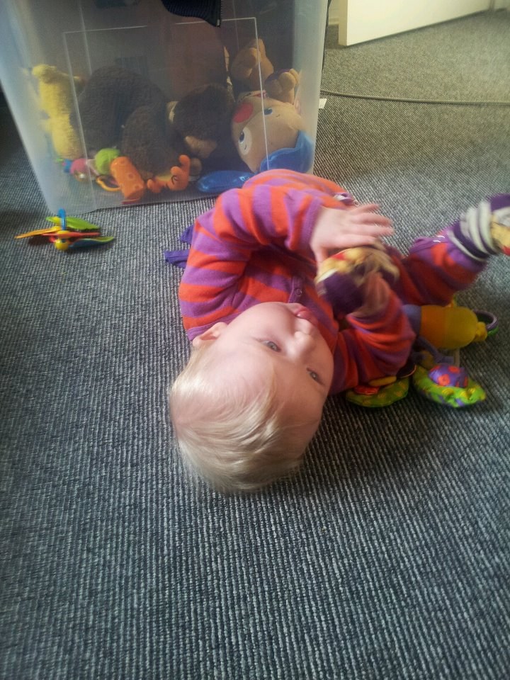 Han kravler derud af, han har ikke intentioner om at slippe sin elskede gåvogn, hehe! Han er i super godt humør det meste af tiden og ELSKER sin dagpleje! Han siger HEJ og HEEEEEEEJ til alle han møder, og vinker. Han sig mamamamam, når jeg roder i køkkenet. Han siger eeeeeej, mens han peger på ting. Arh men altså, det er skønt som de lærer.