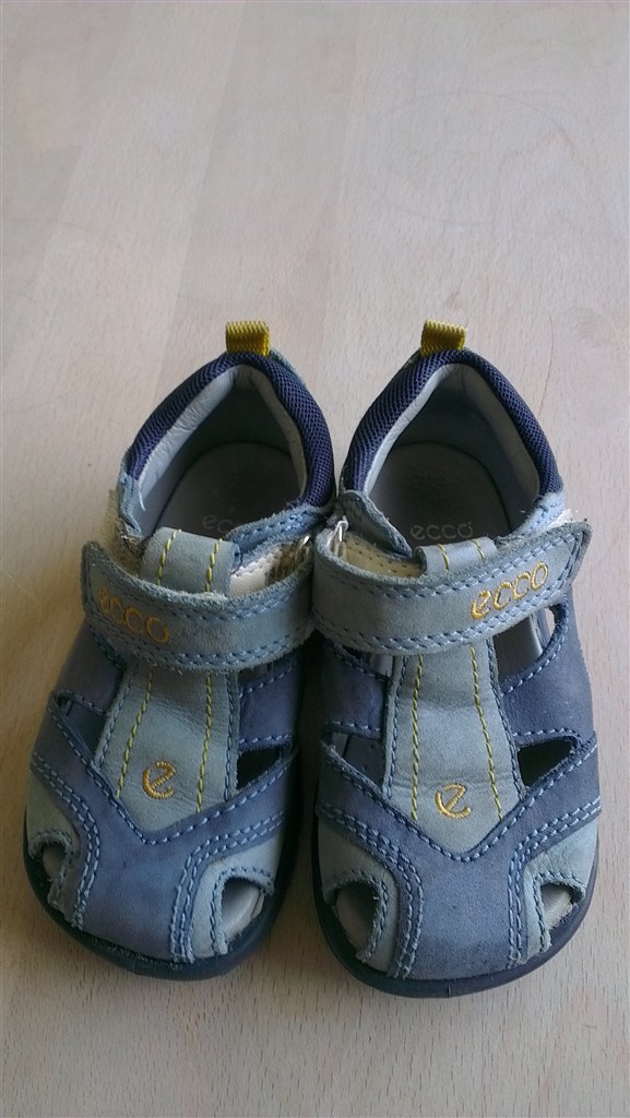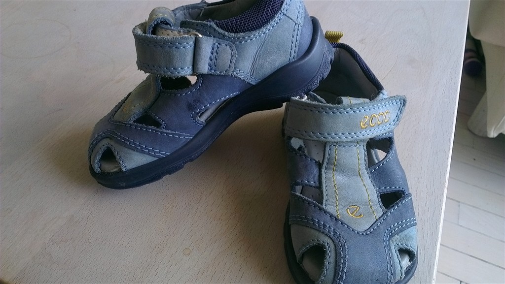 Blå Ecco-sandaler med velcrolukning. De er ikke slidt og brugt ca. 1 måneds tid for to år siden. Kom med et bud.