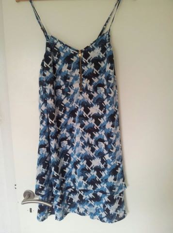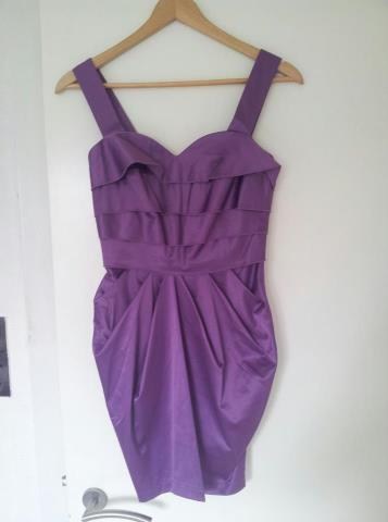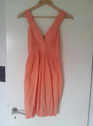 Lilla kjole: Rare fashion str. 8, brugt 2 gange.Blå: Global Femme, str. S, brugt få gange.Orange: Second Female, str S, aldrig brugt.Mørkegrå: H&M str. 36, brugt 2 gange