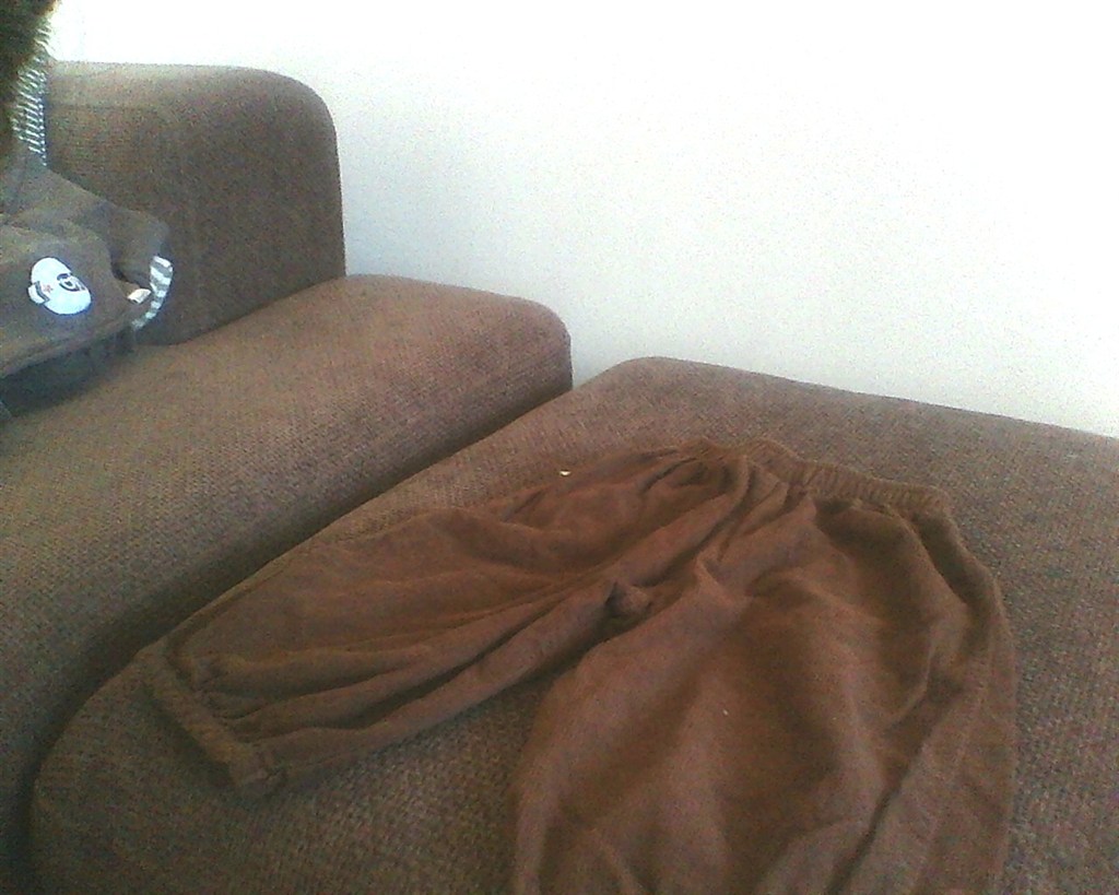 Billed 2: Idat i brunt fløjl: Str 74. Gode men brugte