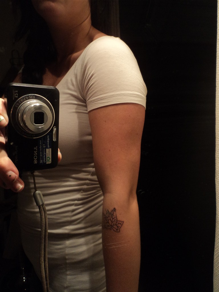 Når man holder armen lige, så buler det øverste stykke af armen lidt, så man kan se den øverste muskel, hvis du forstår?
