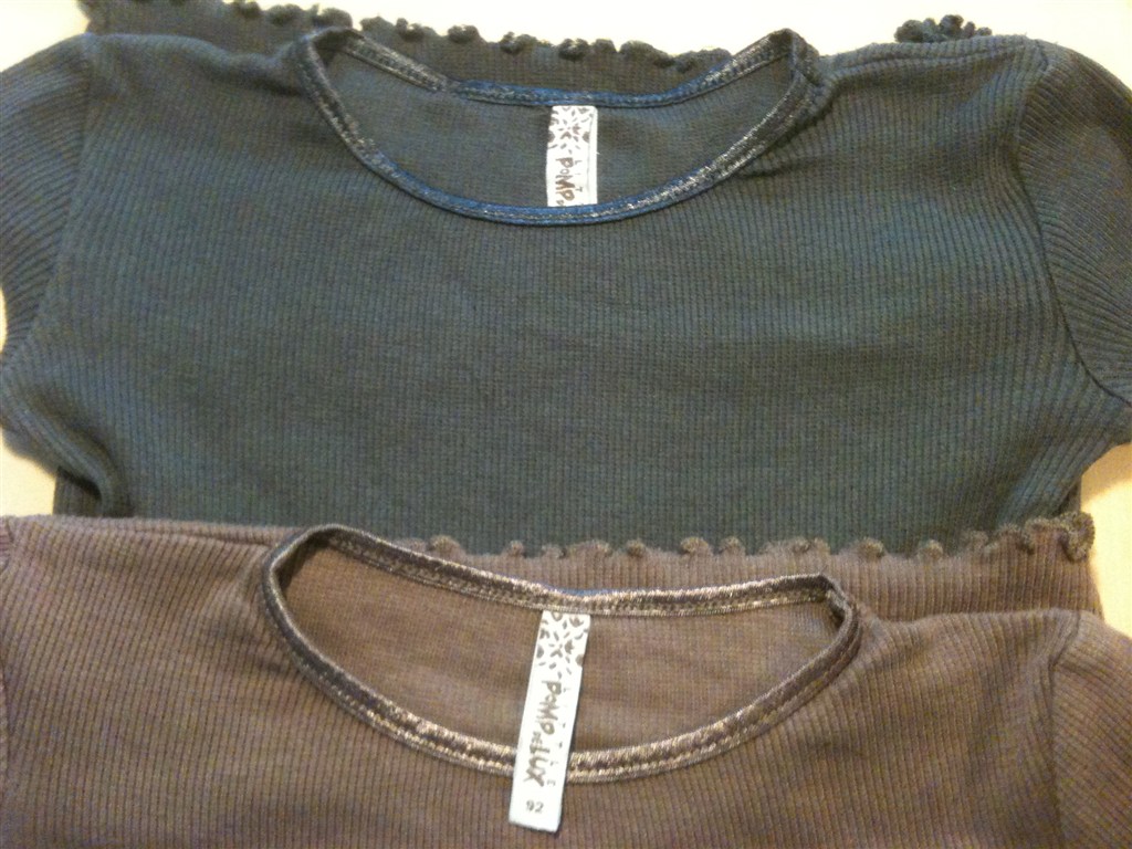Lækre POMPdeLUX bluser i str. 92 i farverne støvbrun og støvgrå De er begge brugt ganske få gange og er derfor som nye. Ingen huller eller pletter.