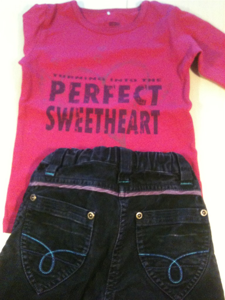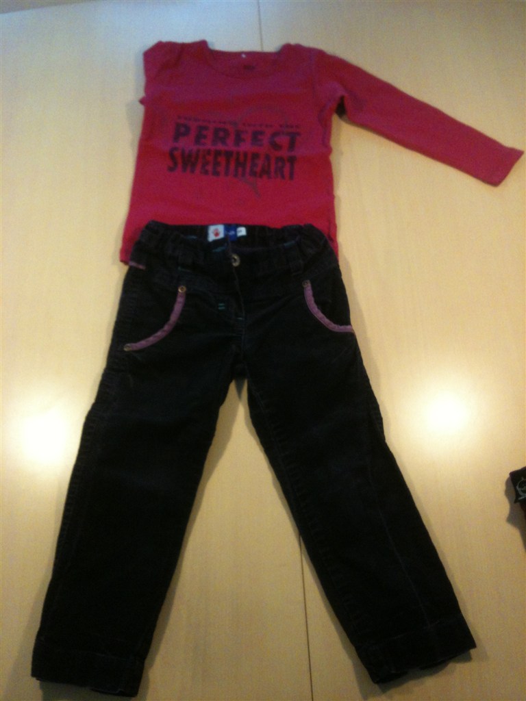 Lækkert sæt med bukser fra Molo i str. 98 og bluse fra Name it i str. 92. Delene er brugt samtidig. Bluse såvel som bukser er i fin stand og der er fine detaljer på bukserne. Jeg har dog fundet to røde pletter på bukserne, så derfor sælges sættet så billigt nu, da jeg ikke selv vil forsøge at gøre noget ved pletterne. Billede kan sendes. Bukserne kostede 400 kr. fra ny og blusen 100 kr.