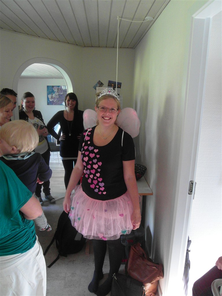 Min ene veninde blev hentet på motorcykel og blev kørt hen til en anden venindes hus. Der fik hun en gave som var et sæt fedt undertøj. Så fik hun lagt make up og fik sit nye undertøj på og så blev der taget billeder til en kalender til hendes mand.