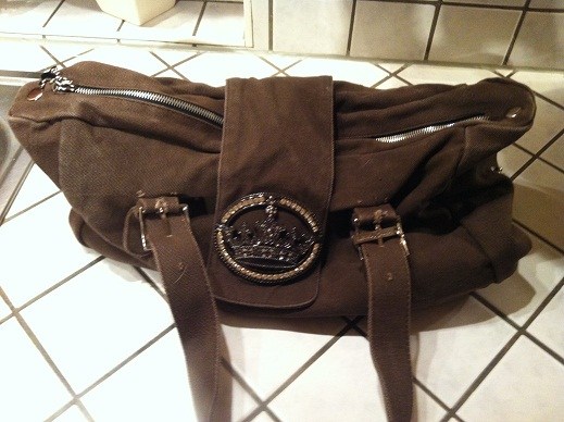 Tasken er letter falmet i farven pga en tur i vaskemaskinen.