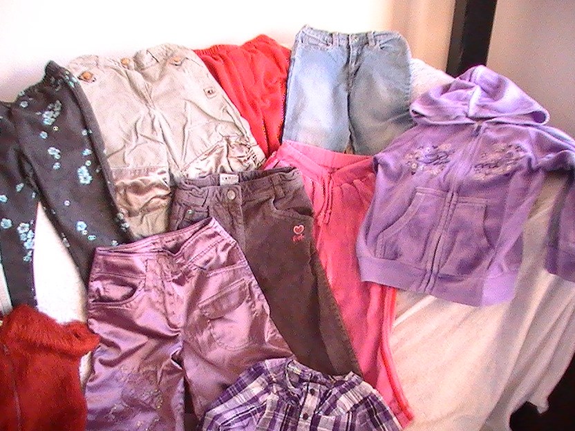9 bukser 1 shorts 6 bluser 1 skjorte 4 kjoler 1 sommerkjole 1 nederdel 1 hætte fleech pomb delux 1 alm. fleech 1 hættetrøje 2 hættebluser m lynlås 1 cardigan 5 tshirt 3 underbluser 1 soltop / 1 badebuks 1 sæt nattøj 1 natbuks 1 sæt joggintøj 1 strikbluse 3 strømpebukser 4 sæt sokker 1 kasket 1 sommerjakke i fake pels pris 495,-