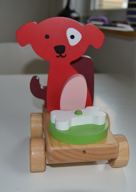 12. Træhund/puslespil der kan trækkes, der skal blot sættes en snor i.