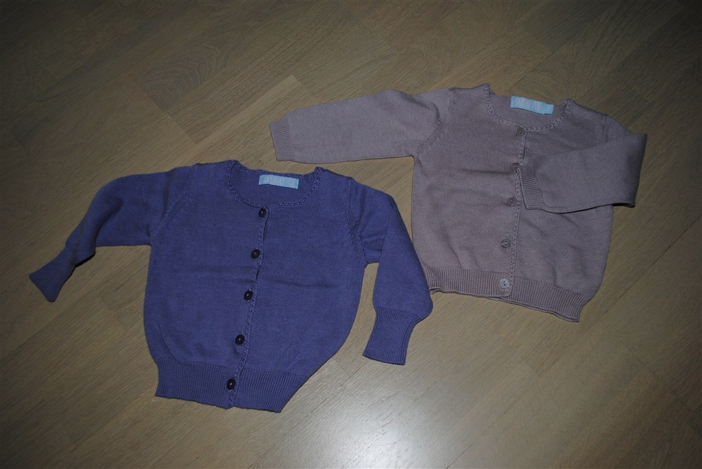7: 2 Eksklusive cardigans fra Wheat i finstrik, classic knit. Nyprisen var 250 kr./stk. Jeg håber at kunne få 100 kr./stk.