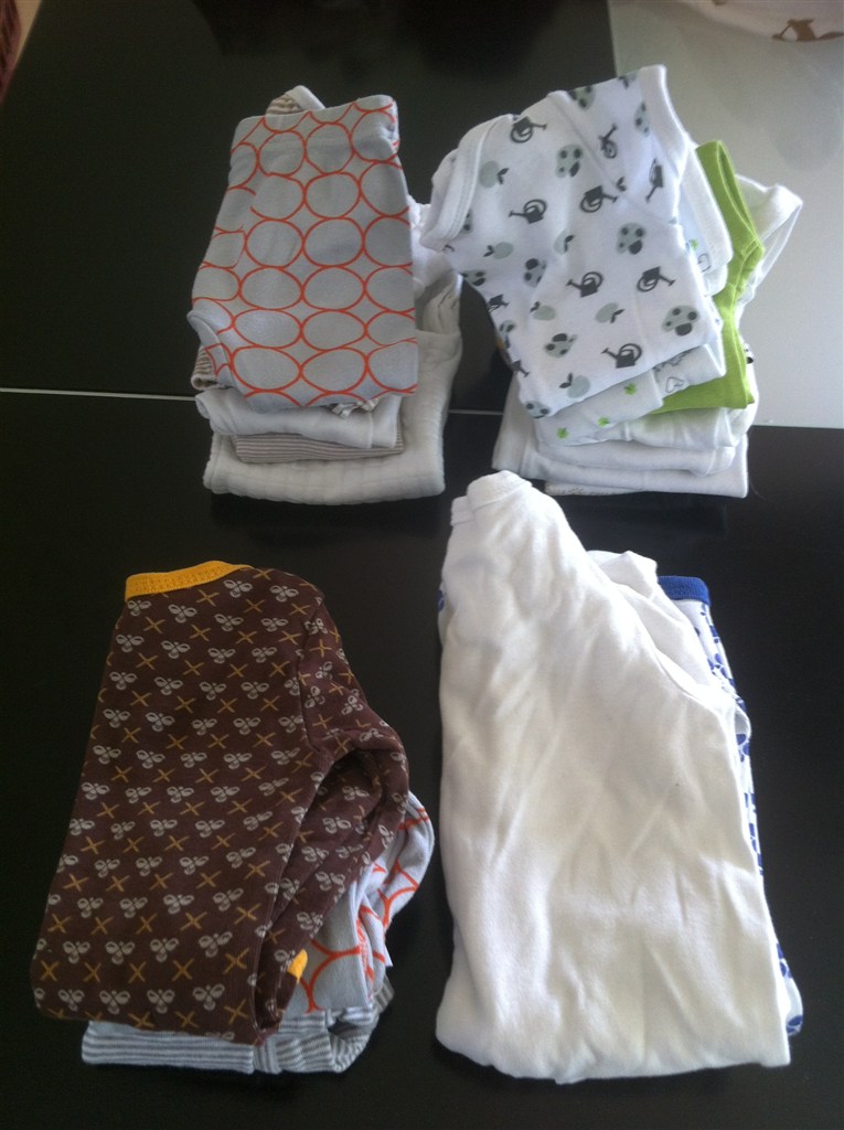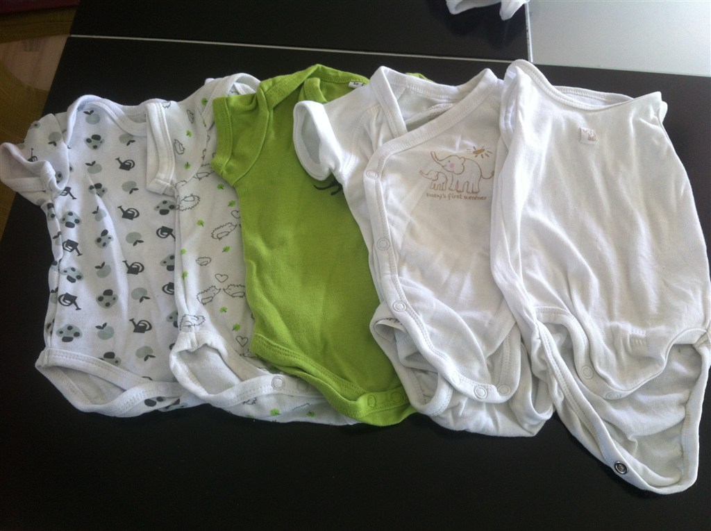 Babysam, 4 kortærmede bodyer samt 2 heldragter med fødder str. 50. Aldrig brugt kun vasket.